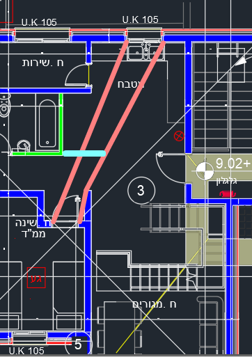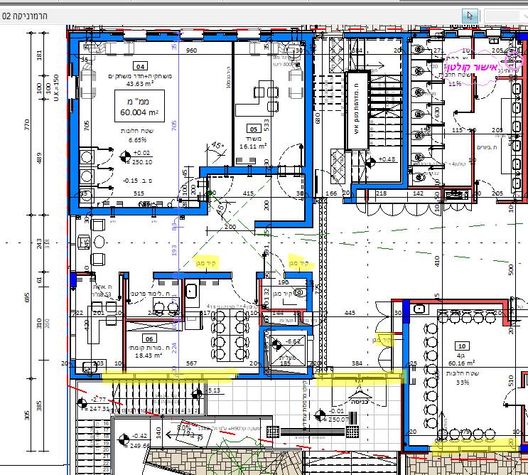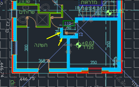 בצילום מסך הבא סימנתי לאדריכלית את הקיר בחץ צהוב – זהו קיר בטון מיותר, הפכנו אותו לקיר בלוק, זוהי הדוגמא הפשוטה ביותר.
